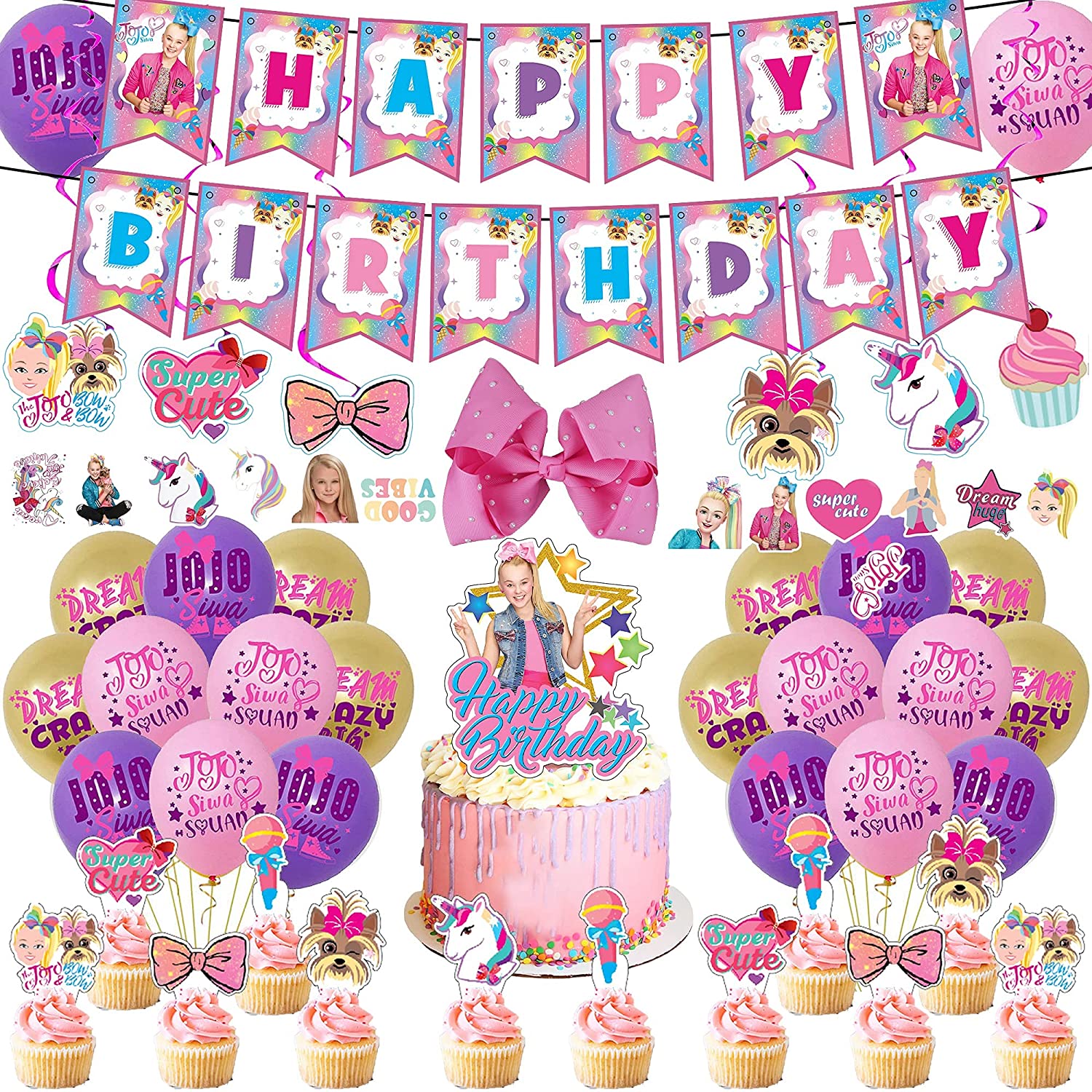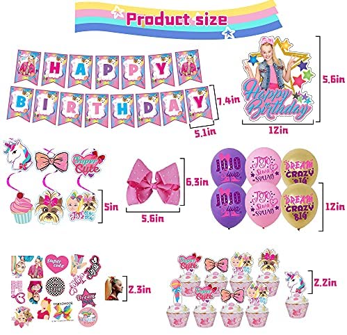 103 Pcs JoJo Birthday Party Supplies Party Decoration Include Hair Bow, Birthday Banner, Hanging Swirls, Cake Topper, Cupcake Topper, Balloons, Sti…