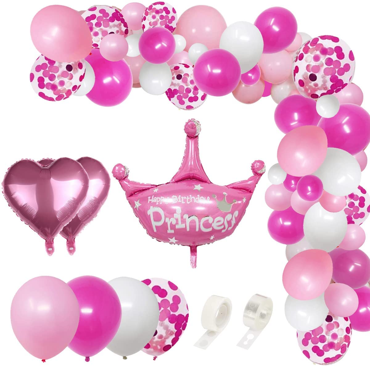 103Pcs Pink Girl Balloons Garland Arch Kit, Princess Party Supplies Balloons,Rose Pink and White Balloon Pink confetti Latex Balloons for Birthday Wedding Baby Shower Party Decorations Supplies