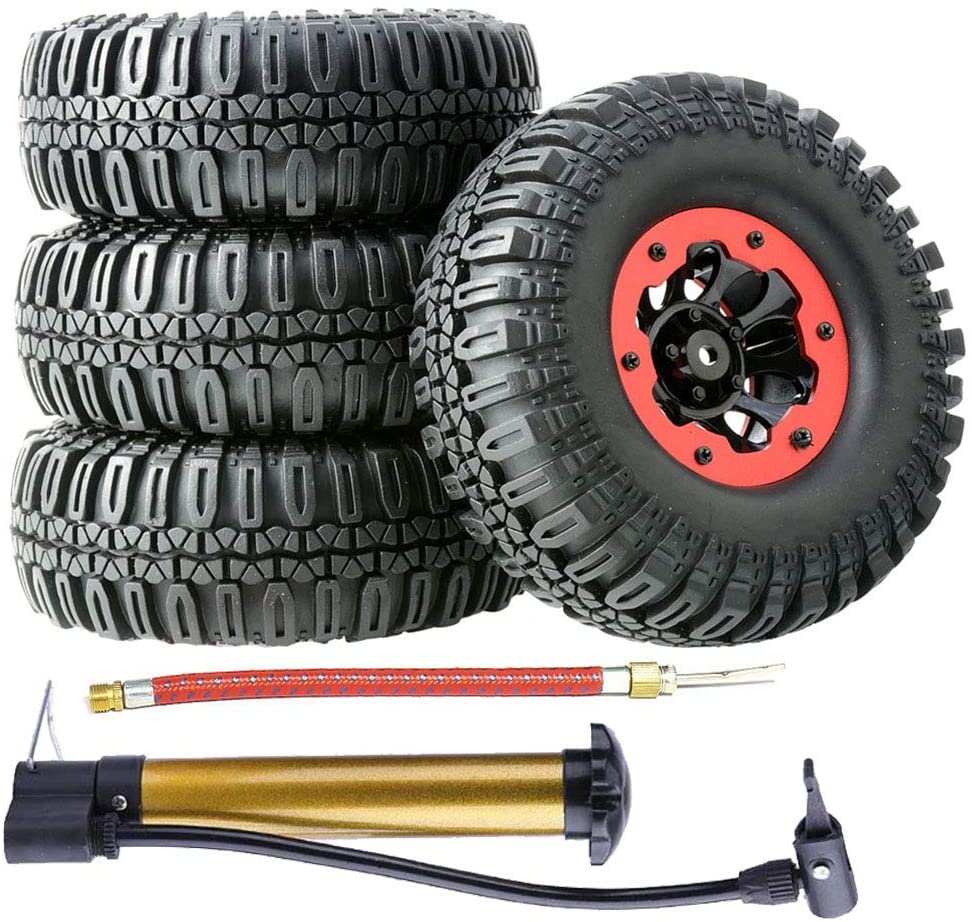108mm RC Crawler Tire and Wheel Set, 1/10 Scale 1.9 inch Inflatable Beadlock Wheels for 1/10 RC Crawler Car Axial SCX10 Tamiya CC01 D90 (Black&Red)