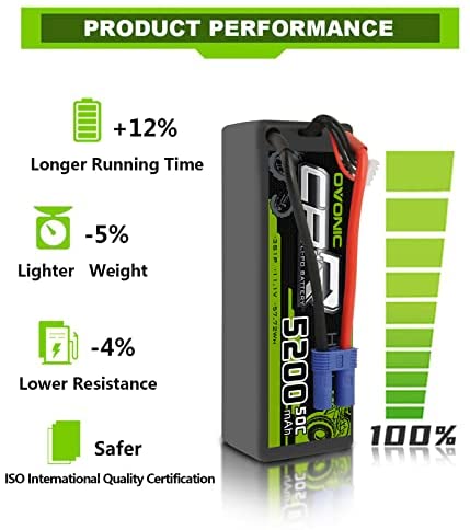 Specification – Ovonic 5200mAh 11.1V Lipo Battery Dimension(±3mm): 139*47*39mm /5.47*1.85*1.54inch(L*W*H), Approx Weight(±5g): 375g /0.83lb