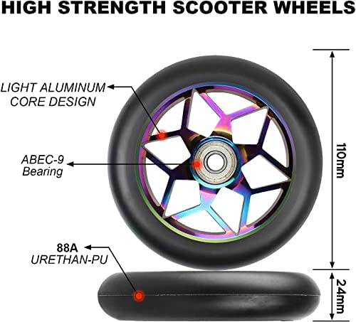 110mm Scooter Wheels, Pro Scooter Replacement Wheel W ABEC-9 Bearing, 1 Pair