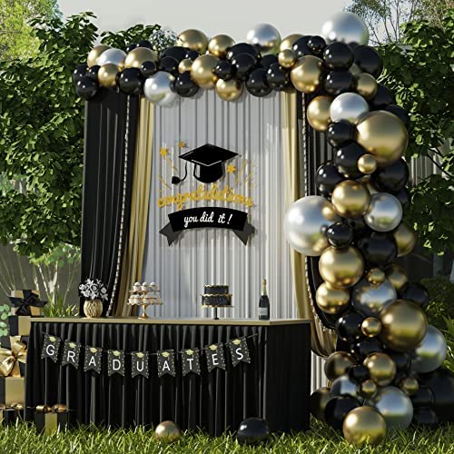 111PCS Black Gold and Silver Balloon Garland Arch Kit Metallic Black Metallic Gold Chrome Silver Latex Balloons Set for Birthday Graduation Bachelorette Wedding New Year Party Decoration