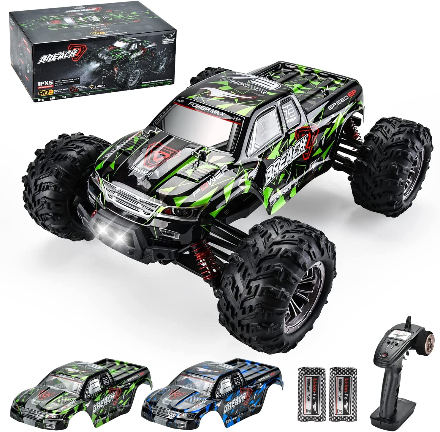 ALL-TERRAIN HOBBY RC TRUCKSSpeed, power, fun, versatility, this remote control truck has it all! Its drive-over-anything ground clearance and ultra-tough body make it feel nearly indestructible. Four high grip rubber wheels can blast through sand, mud, rock… Its IPX5 waterproof increases the off-road versatility that allows you tackle the wet condion. This versatile rc monster truck is a cool gift for the one you like. WIAORCHI goes the extra mile to bring you a fast and fun RC experience!
