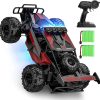 2.4GHz NO DELAY RTR REMOTE CONTROLLERThe toy truck is equipped with Easy-to-use non-interference remote controller with 2.4GHz frequency makes the car always ready to run and has non-jamming function. The radio control distance is about 50 meters, it is a great off-road monster truck for indoor and outdoor. No worries to run this remote control cars on grassland , sands, and bumpy grounds.