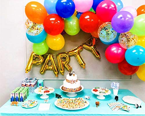 118 ASSORTED SIZE/COLOR BALLOON ARCH KIT: Including a value pack of 118pcs assorted color balloons, assorted in both colors and sizes, 5pcs for 5 inch balloons and 6pcs balloons for 12 inch balloons for each color, they’re red, orange, yellow, green, lime green, dark blue, light blue, purple and white, additional 5pcs for gold confetti balloons and 3pcs for 18 inch balloons, the pack also contains balloon garland strip, balloon tie tool, glue dot, tassel, and manual COLORFUL RAINBOW BALLOONS: Rich colorful and vibrant balloons are carefully chosen to make colorful rainbow balloon garland or rainbow balloon arch, all size balloons assortment will make additional charm for it. Make a rainbow balloon arch for your kids birthday party, you’ll definitely see their excited faces PARTY RAIINBOW BALLOONS: We provide more than enough quantity and multiple sizes of the rainbow balloons arch/garland kit specially for your parties or event, like baby shower, bridal shower, wedding, birthday, gender reveal, anniversaries, celebrations, opening ceremonies, etc, or for festivals like Mexican Fiesta Cinco De Mayo, Mother’s Day, Father’s Day, Children’s Day, July 4th, Halloween, Thanksgiving Day, Christmas or New years Day, perfect for indoor or outdoor activities PREFILLED CONFETTI BALLOONS: Included confetti balloons have confetti prefilled, what you have to do is blow them up and scrub the balloon on clothes, hair or carpet to produce static so confetti could attach to the inner wall of the balloon beautifully PREMUIUM MATERIAL: Balloons are made of thick latex, sturdy quality and no smell, not easy to pop, helium quality rainbow balloons; If you’re finally not satisfied with our assorted rainbow balloon garland kit, a refund will sure to be issued