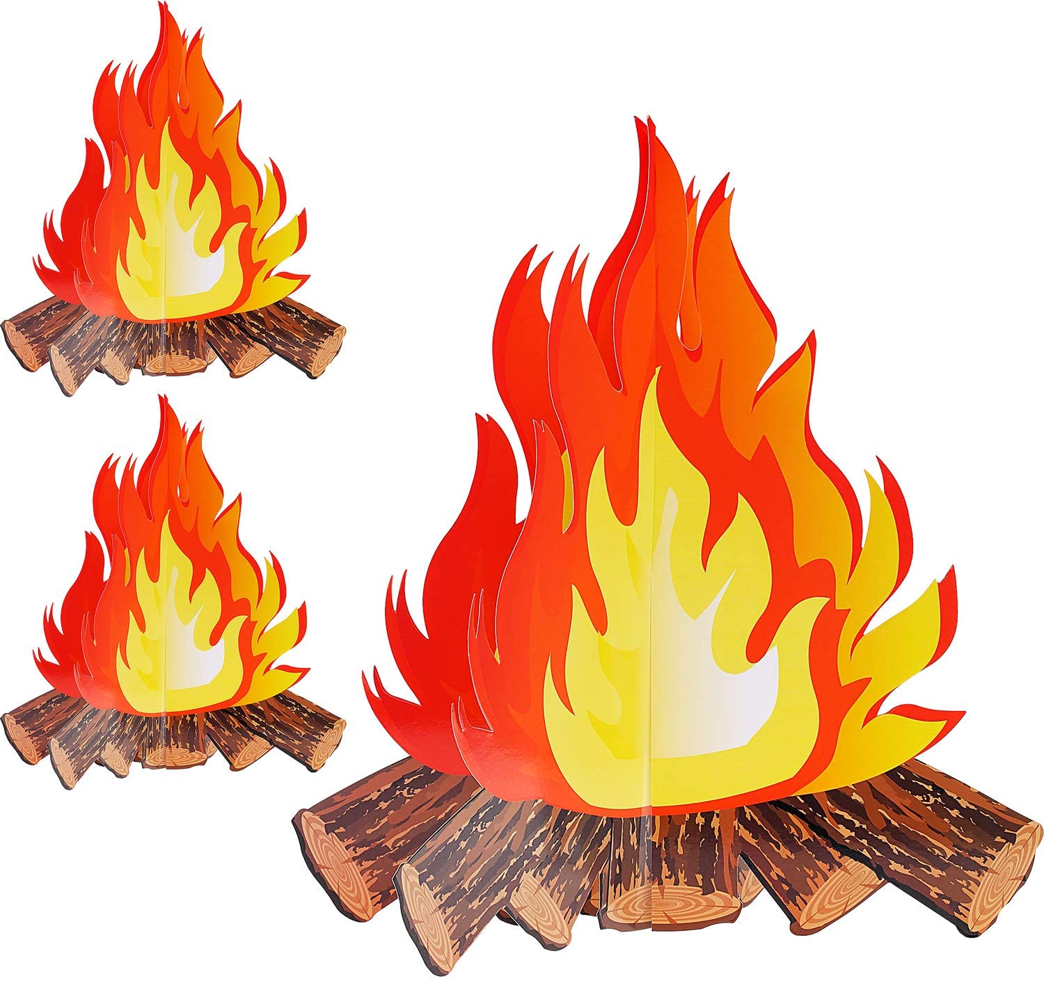 Package includes: one pack includes 3 set cardboard campfire, each set has 2 pieces cardboard campfire Material: the 3d campfire is made of cardboard, can be repeated to use; And the campfire centerpiece is easy to assemble, durable and stable Good decoration: the cardboard campfire is great for children to play in their tent forts to create a stimulate imaginative play Apply to: suitable for birthdays, Halloween, Christmas, camping, summer camp, block parties, pretend to roast marshmallows and cookie, fit for boy and girl scouts, lumberjack and so on Size: the campfire decor measures approx. 12 inches in length and 11 inches in width, folds up easily and repeats to use
