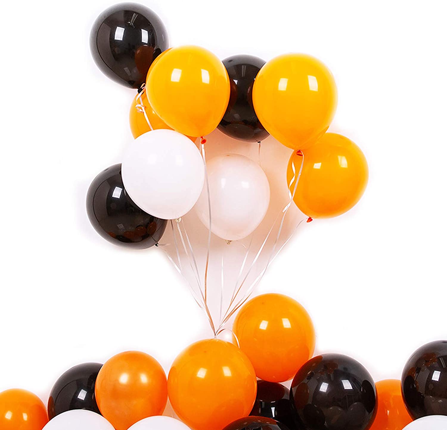 12 inch White Balloons Black Balloons Orange Balloons Mix, White Orange Black Latex Balloons Bulk for Hallows Day Party/Birthdays/Wedding/Festivals/Christmas/Baby Shower/Anniversary Pack-100