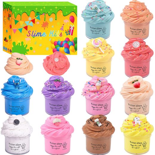 12 Pack Butter Slime Kit, with Unicorn, Cake, Coffe, Blue Stitch, Ice Cream, Fruit Scented Slime, Super Soft and Non-Sticky, Birthday Gifts, Stress Relief, Party Favors for Girls Boys Kids