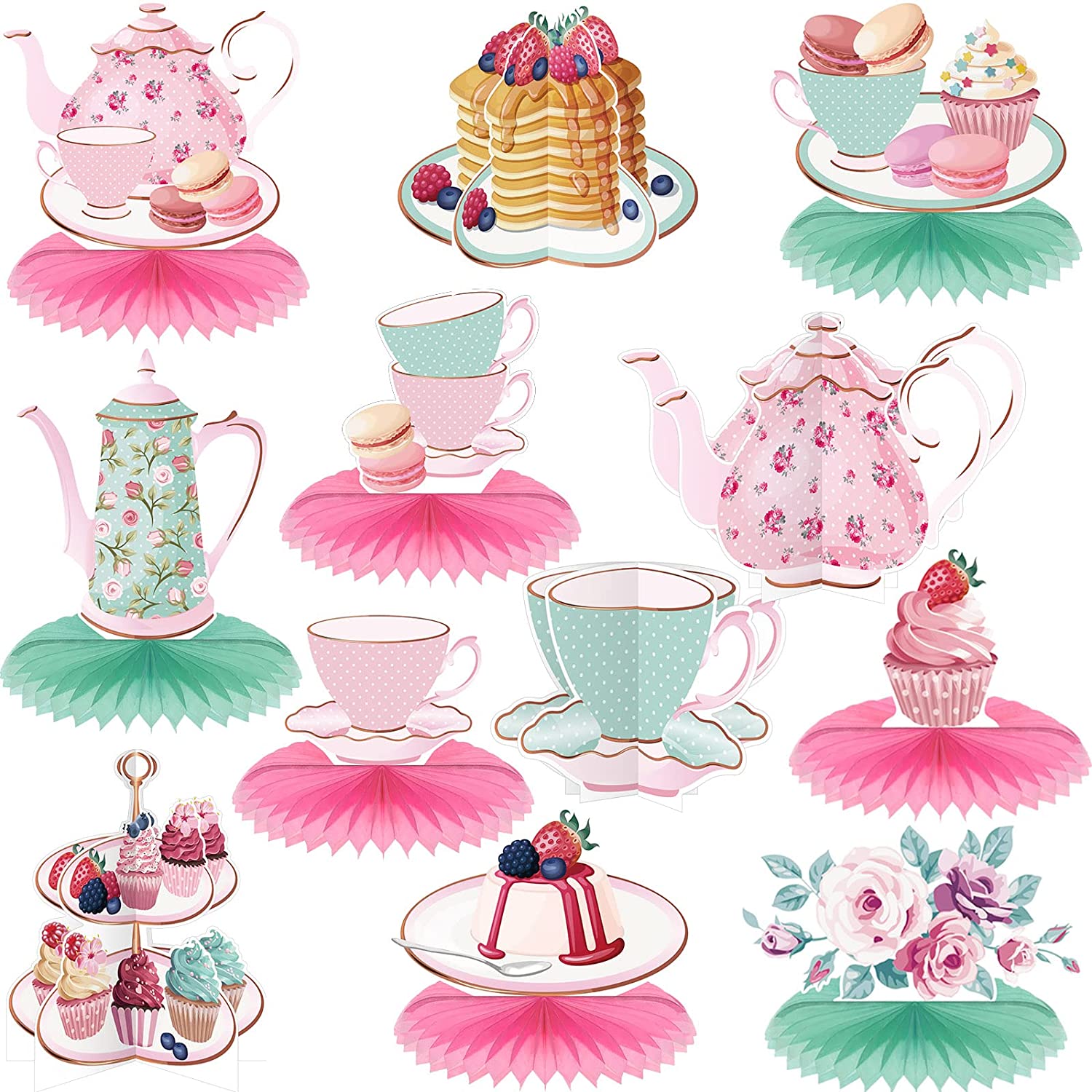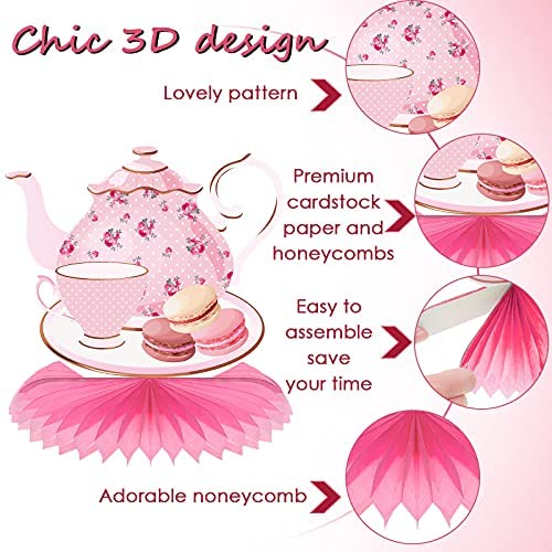 12 Pieces Floral Tea Party Centerpieces Princess Party Decorations Teapot Honeycomb Centerpieces Tea Table Decorations for Floral Tea Themed Birthday Baby Shower Wedding Anniversaries Party Supplies