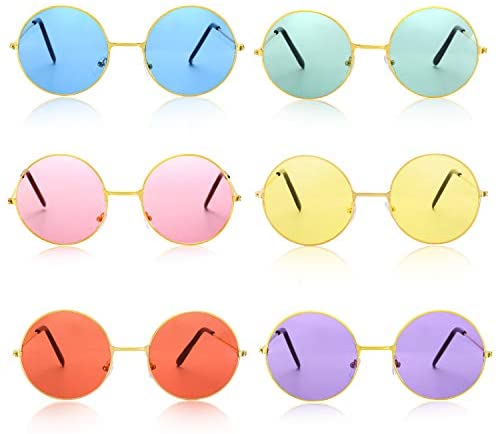 Feature: Material: The flower on the garland is made of quality cloth, and the strap is a beautiful and durable hemp rope, that is easy to stretch and comfortable to wear, round sunglasses with sturdy metal frames and polycarbonate mirrored lens make them durable and cool. Beautiful accessories: Exquisite garlands with 11 daisy are adjustable in length and fit for most girls, retro glasses are regular in size and comfortable to wear, suitable for all skin types and stylish looks, it is ideal for everyday wear, these beautiful decorations, they can be worn with a variety of clothes and hairstyles to make you look more charming. Wide application: These beautiful hippie costume sets are widely applied in performances, parties, weddings, festivals, photography, travel and many other occasions, you can create more uses according to your needs, suitable for women of most ages. Specification: Flower headbands: Color: luminous yellow, light pink, mint green, light blue, rose red, purple Material: quality cloth Size: Daisy flower: approx. 4 cm/ 1.57 inches in diameter Floral wreath: approx. 10-27 cm/ 4-10.6 inches in diameter Maximum length of garland: approx. 84 cm/ 33 inches Hippie sunglasses: Color: yellow, pink, green, blue, red, purple Material: sturdy metal frames and polycarbonate mirrored lenses Size: Spectacle lens: approx. 5.2 cm/ 2.04 inches in diameter Width between spectacle lens: approx. 2.3 cm/ 0.9 inches Package includes: 6 x Sunflower headbands 6 x Hippie sunglasses Note: Please allow slight errors in size due to manual measurements.