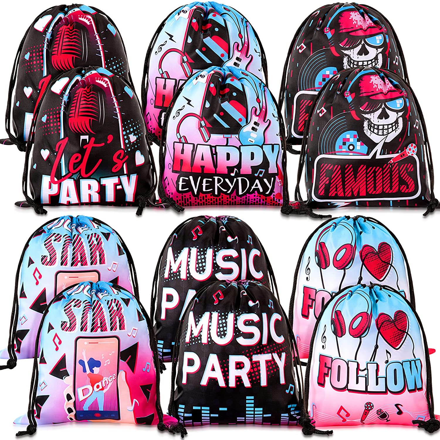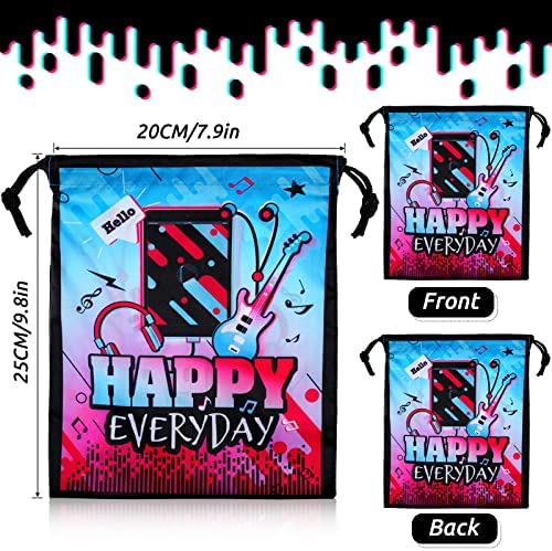 12 Pieces Music Party Gift Treat Bag Music Theme Goodie Favor Bags Music Treat Bags Music Goody Bags Music Birthday Party Favors with Drawstring for Kids Social Media Theme Birthday Party Decoration