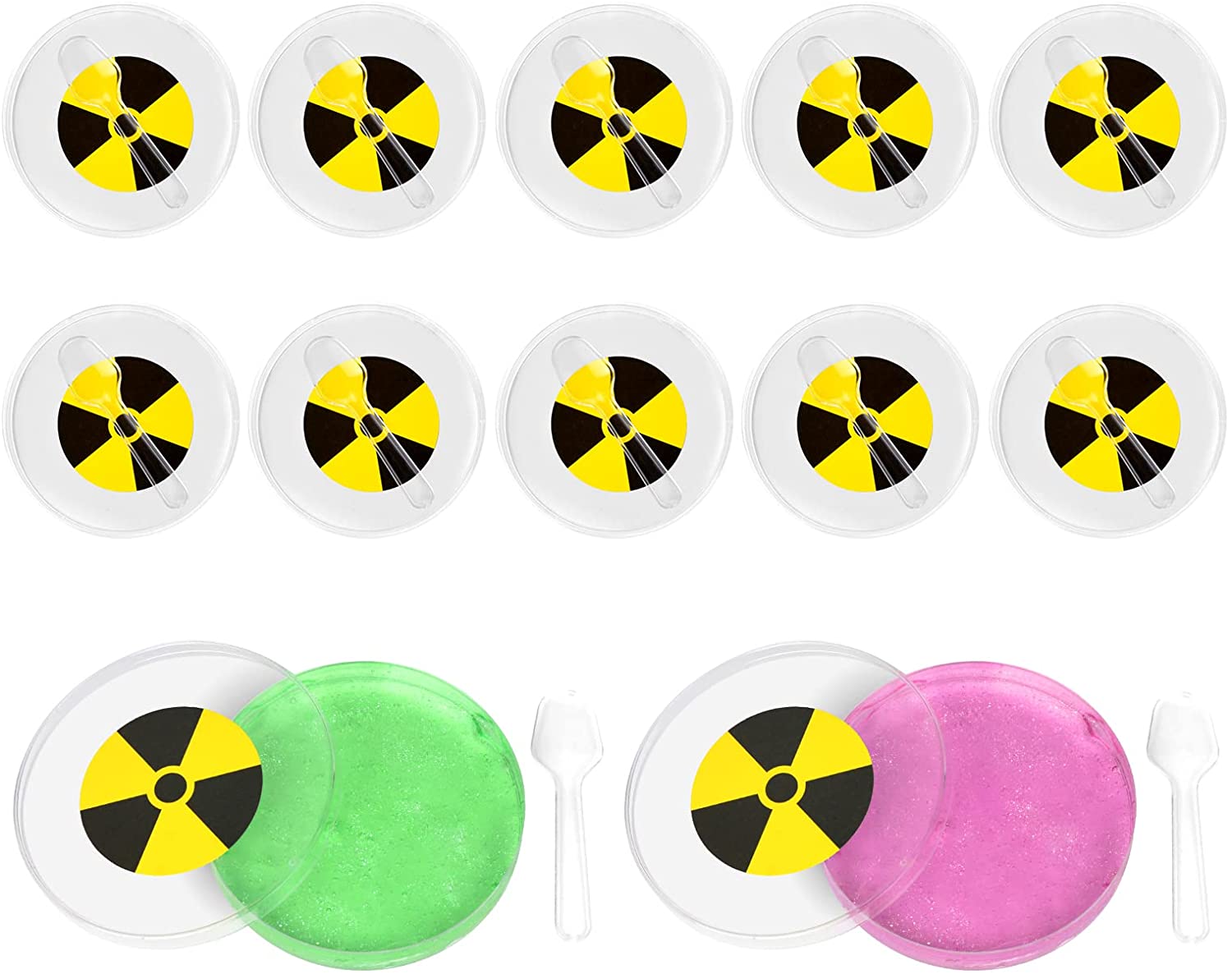 Specification: How the science dish jello dessert turned out:This scientific and gross-in-a-good-way treat is easy to make! Just pour liquid jello into dishes (about half way full). If you’re using gummy worms or other big gummies, you can then add them in now. Refrigerate for about an hour, then add some sprinkles and continue to refrigerate until serving. Package contents: 20 pieces Radiation Sticker 12 pieces Science Party Cups 12 pieces mini spoon Color: as pictures shown Materials:plastic Size: Radiation Sticker SIZE : diameter in 2 inches Mini Spoon SIZE: diameter in 1.1 inches, 1ength in 3.9 inches Science Party dishes:90mm diameter x 15mm deep Dishes with Lids.