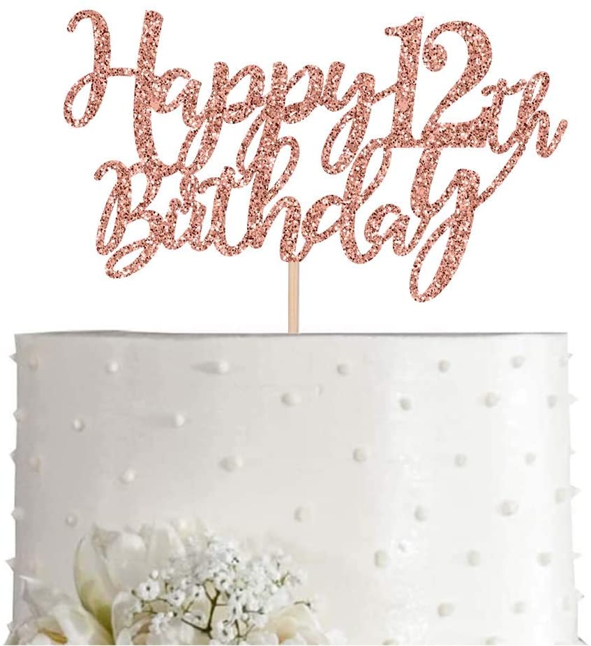 12 Rose Gold Glitter Happy 12th Birthday Cake Topper, Birthday Party Decorations, Supplies