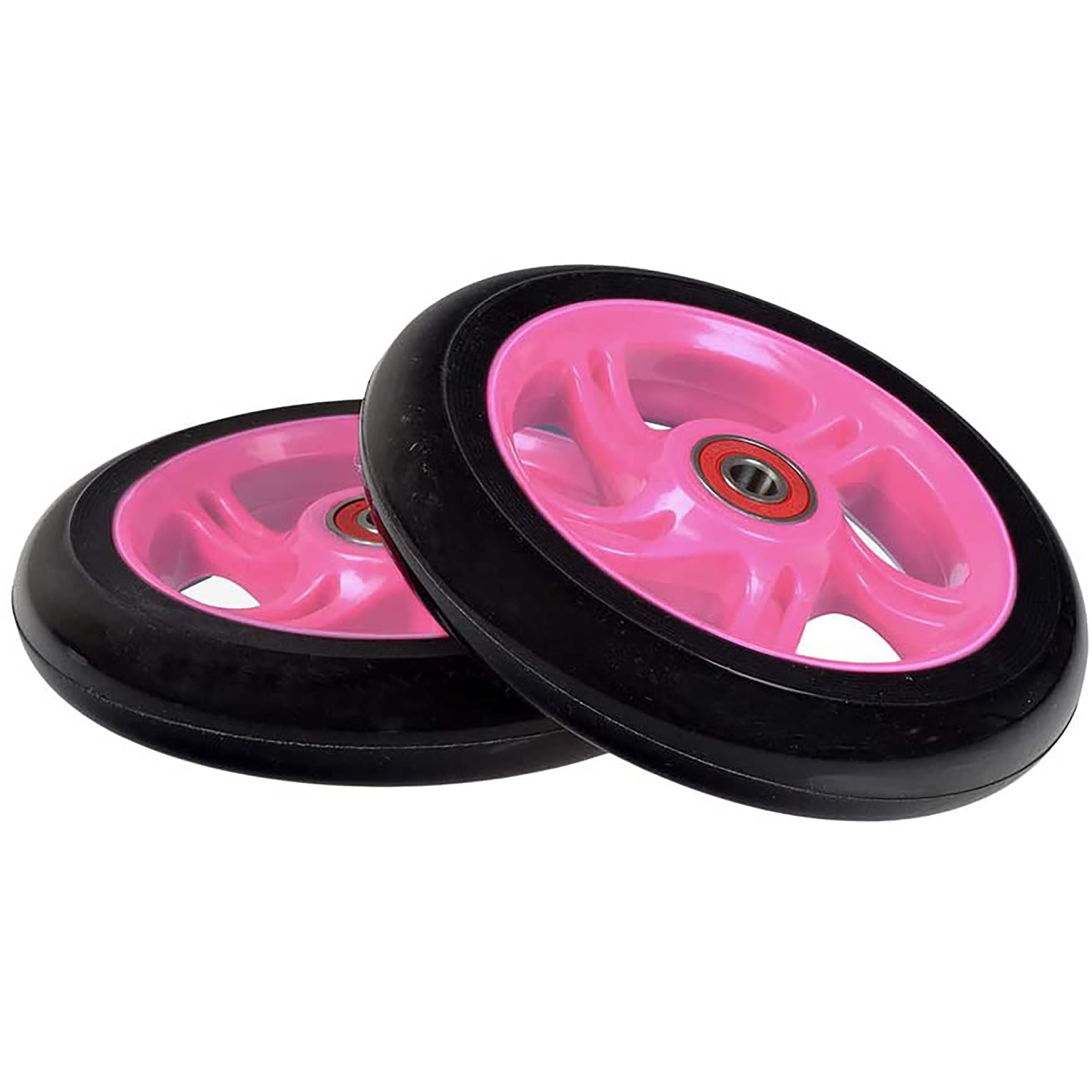 125 mm Wheels for The Razor A3 Kick Scooter, Black Wheel Pink 5-Spoke Hub (Set of 2)