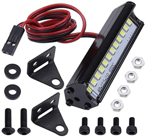 12LED Light Bar Metal 50mm/1.97in Roof Lamp Kit for 1/10 Traxxas Slash Rustler TRX-4 SCX10 D90 KM2 Gen8 1/16 E-Revo Summit 1/18 Volcano Teton Latra…