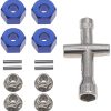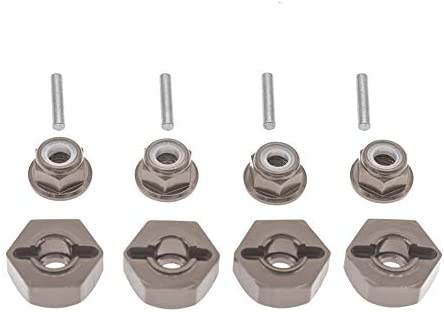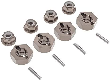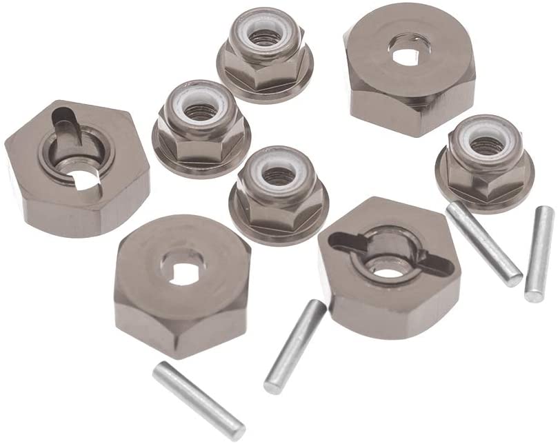 Specification Color: Titanium Material: Aluminum Alloy Hex Dimension: Hex 12mm Thickness:6mm Axle Hole Diameter:4mm Axle thread: M4 PACKAGE INCLUDE: 4x wheel adapters 4x M4 Locknuts 4x Pins