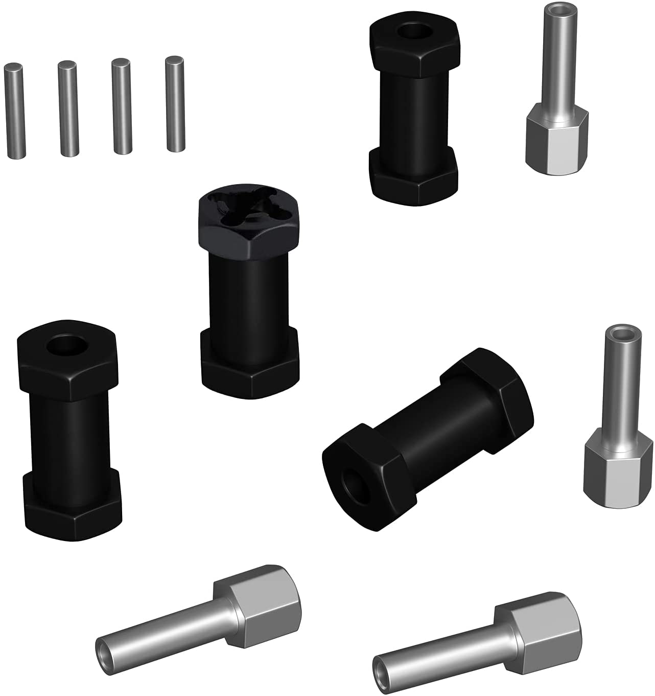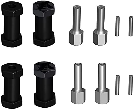 About product: When you love your remote control car and marvel at its speed, you can always be satisfied. If you want to have a better experience, you can use this 12 mm RC Wheel Spacers to make your car more stable and cool Package Included: 4x hex hub wheels 4x Axle Pins Color: Black Material:Aluminum alloy Compatible with:1/10 RC Cars Note:There may be some dimensional errors in manual measurement