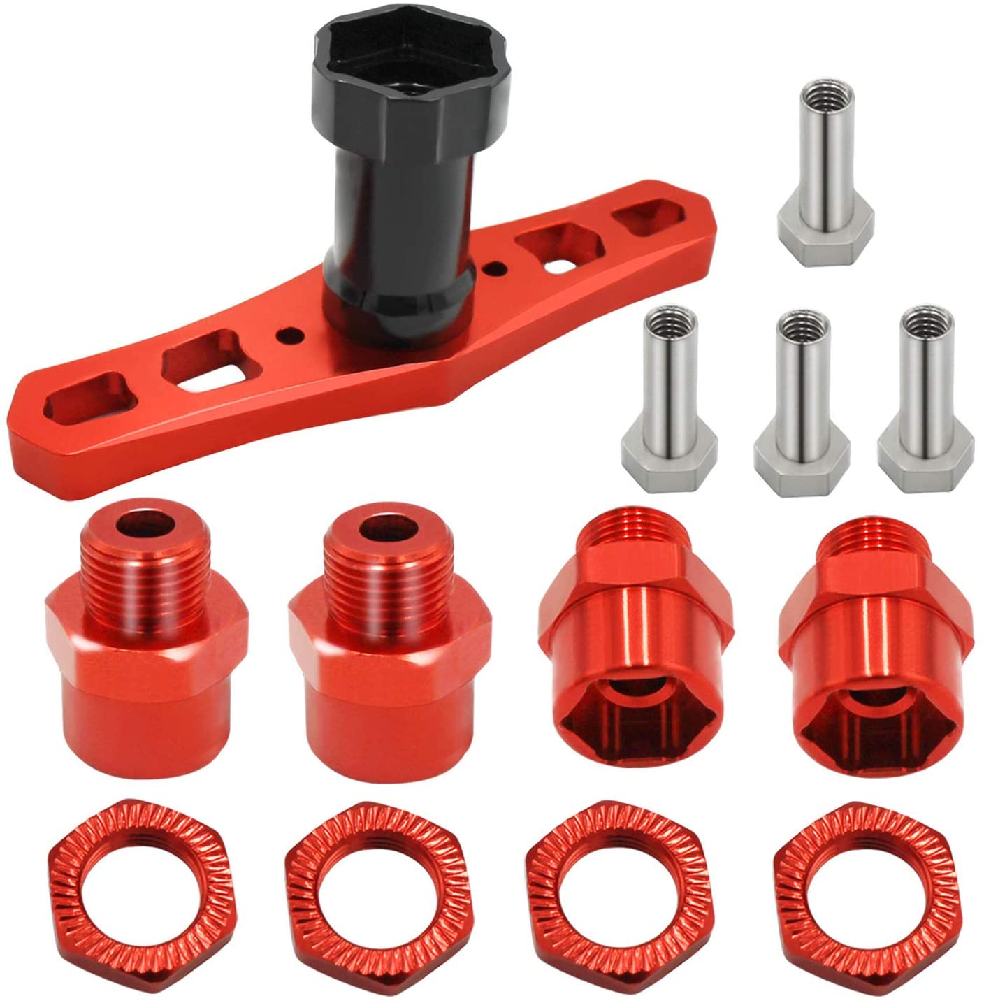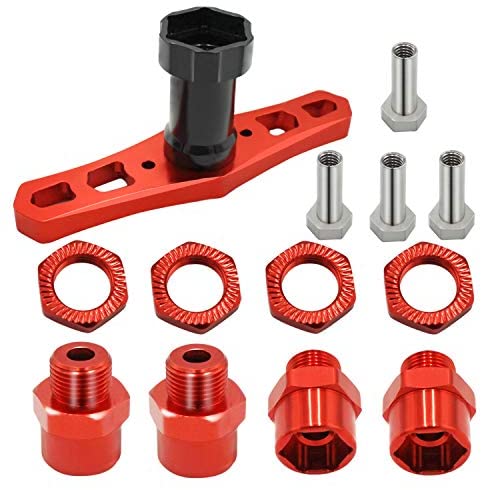 12mm to 17mm Wheel Hex Hub Adapter Extension Conversion 15mm Offset Extension with Wrench for 1/10 RC Cars Trucks Off Road Buggy Upgrade 1/8 Tires (red)