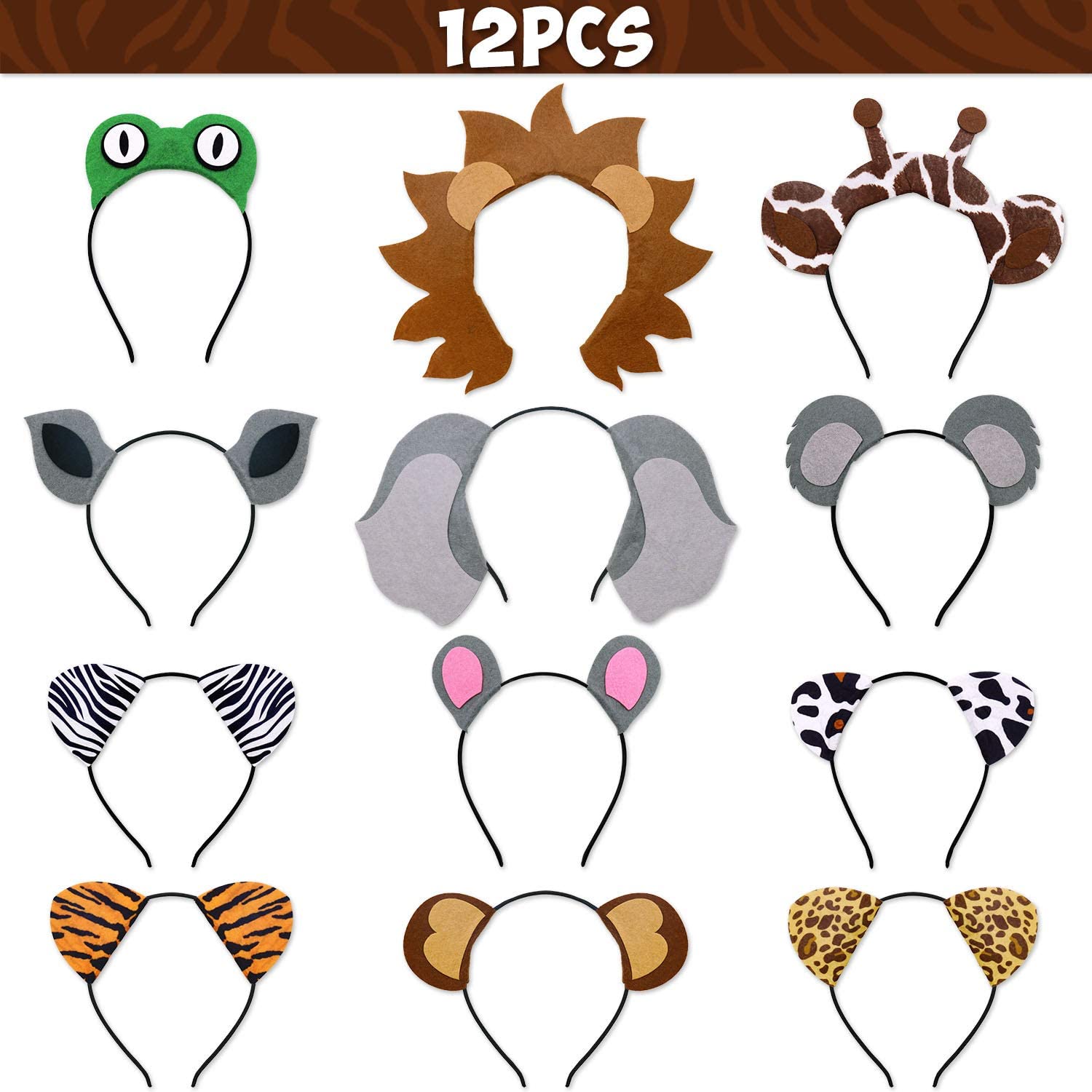 Jungle Animal Party HeadbandsPackage includes 12pcs jungle animal headbands. More animals and more fun! The jungle animals include Hippo, Crocodile, White cheetah, Koala, Monkey, Rhinoceros, Elephant, Lion, Giraffe, Tiger, Zebra and Leopard. They will surely be a hit of your animal themed party! Prime QualityThe jungle animal plush ear headbands are light and well-made. They are made of quality-thick and soft felt. The vibrant colors and vivid designs will meet your requirements and enhance your Safari party! One Size Fits MostThis set of zoo animal hair hoops can fit from the toddlers to the elder kids and even the adults! The whole family and all the invited guests will have fun with these funny animal headbands! Functional Party DecorationsPerfect for animal themed birthday party, Halloween costumes, jungle animal themed cake smash, safari baby shower, Wild One party, bachelorette party and animal cosplay party! These headbands will surely be a highlight of your wild party! No Regret PurchaseThis set of jungle animal headband is well-designed and meets your quality requirements. If not, please contact us, and you will get a full refund with no conditions!