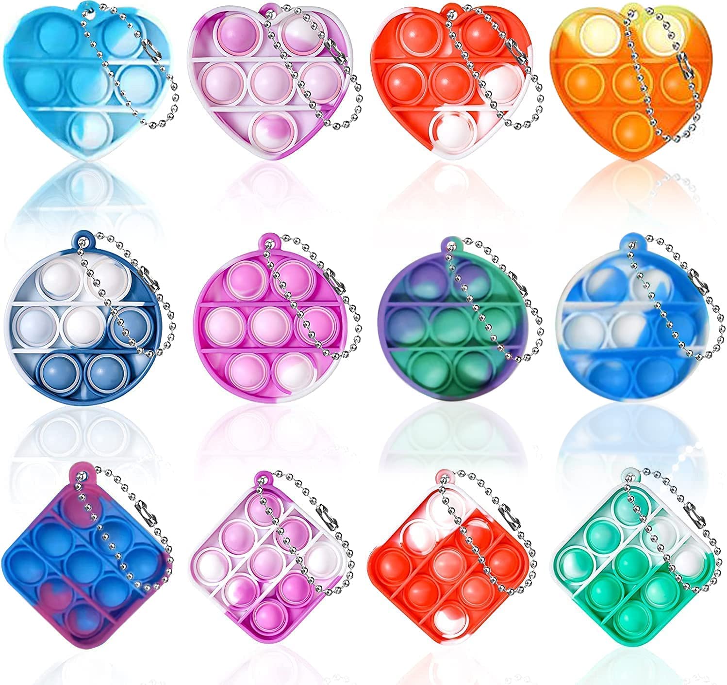 12pcs Mini pop Fidget Keychain Bulk,Fidget Stress Relief Hand Toy for Party Favors , Party Bag Fillers Bulk Toys for Kids Teens Christmas Stocking Stuffers
