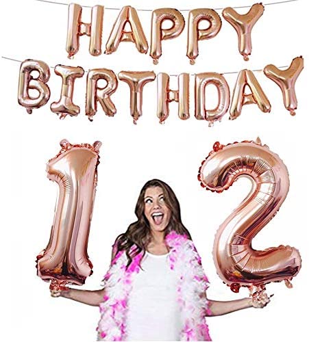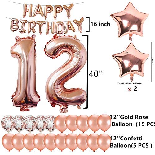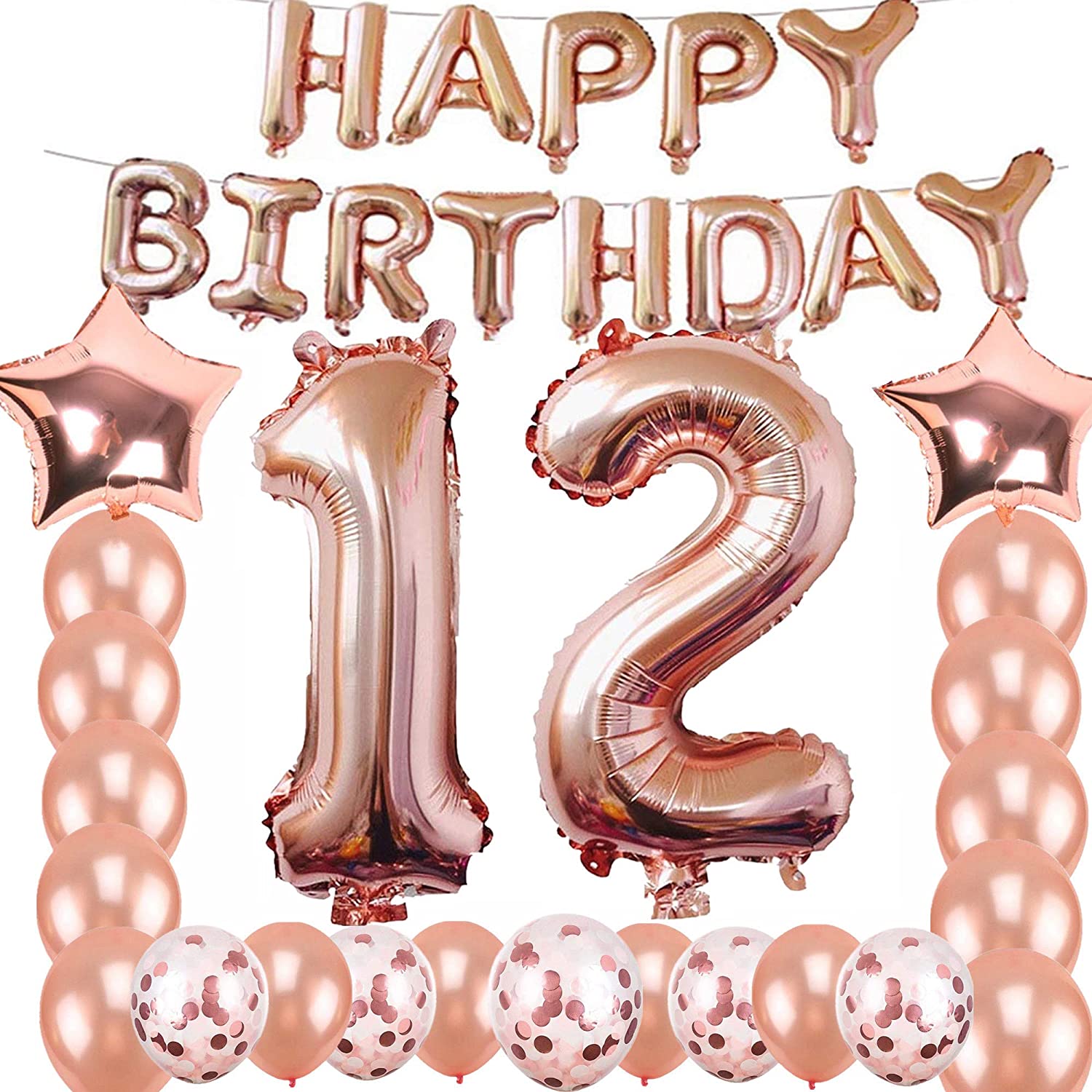 12th Birthday Decorations Party Supplies, Jumbo Rose Gold Foil Balloons for Birthday Party Supplies,Anniversary Events Decorations and Graduation Decorations Sweet 12 Party,12th Anniversary
