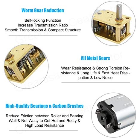 12V 136RPM Worm N20 High Torque Speed Reduction Motor with Metal Gearbox Motor for DIY RC Toys