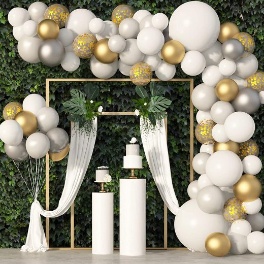 Package Includes – 18 white balloons(2Pcs), 12 gold confetti balloons(10Pcs), 12 white/silver balloons(10Pcs), 10 gold metallic balloons(10Pcs), 10…