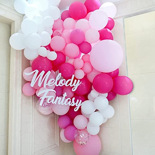 139pcs Pink Balloon Garland Kit Hot Pink Double Stuffed Balloons Pink White Valentines Day Balloon Arch Kit Girl Birthday Party Pink Baby Shower Garland Balloons Kit with Hot Air Balloon Banner