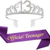 Super and cute happy birthday party supplies, favors, decorations for 13th Birthday. 13th Birthday is a special event. Birthday tiara and “ Official Teenager ” Glitter Purple satin sash will help you look fabulous, happy and have a lot of fun with your friends. Color: Purple glitter satin sash Silver 13th birthday crown. Package: 1 x 13th birthday tiara 1 x Official Teenager Glitter sash