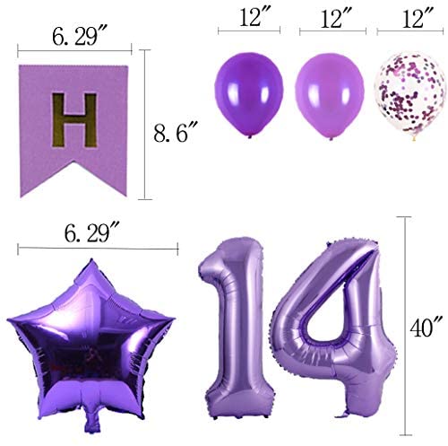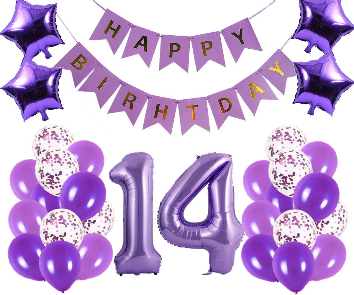 14th Birthday Party Decorations Kit Happy Birthday Banner with Number 14 Birthday Balloons for Birthday Party Supplies 14th Purple Birthday Party Pack