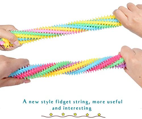 SENSORY STRETCH TOYS : You will get 15 pieces cute, long, colorful unicorn string toys in six colors. These silly strings has also passed the ASTM F963 international safety standard to make sure its safe for your kiddos. RELIAF STRESS, ANXIETY, AND FIDGET REDUCING TOY BULK: Use these for kids who have sensory issues and fidget to avoid hair pulling, skin picking, and nail biting. Kick stress away by pulling, stretching, squeezing, and twisting these noodle like toys that stretch up to 8 feet. Really help to release ones stress or nervous, keeps them calm! PREMIUM MATERIAL: These were made by Thermoplastic rubber (TPR) that has high fatigue resistance as well as resistant to tears and abrasions and extreme weather yet these are still soft and easy to stretch. Each super stretchy fidget toy is 8 inches long and can stretch to over 47inches. The strings are BPA, TIN, LEAD, and phthalate free, hence are safe to children STRESS RELIEF: Great for kids and adults to increase their hand and grip strength but constantly pulling on these stretch noodles as well as anger release and vent extreme emotions. Further, these are ideal for kids with autism, ASD, ADD, and ADHD to stay calm and curb tantrums. BEST GIFT FOR FRIENDS OR CLASSMATES: These are the perfect gift for children and even adults on their birthday, as a Christmas stocking stuffer, Easter basket filler, and other holidays. Use and play for hours in the office, at home and in the school. Lightweight and can easily carry, easy to clean and playful