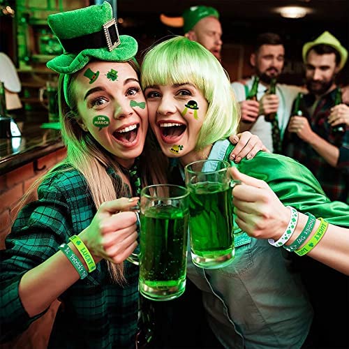 Valuable St Patricks Day Accessory Set – St Patricks Day party favors include 12 beaded necklaces, 12 shamrocks bracelets and 128 temporary tattoo stickers. These party accessories will let the Festive Spirit of St. Patrick’s Day Sprout. Share green and fun with friends and family either in crowds of parade or at St. Patrick’s Day Party St. Patricks Day Necklaces – 12 beaded necklaces comes in 4 styles and made of premium plastic. Each necklace measures about 31.5 inches/80cm. This necklace set, featuring shamrocks in green, is very extra. Get ready to party in these St. Patricks Day beads. Share with your besties or wear all twelves and make a lucky statement St. Patricks Day Bracelets – 12 wristband bracelets has 6 styles. They are made of quality silicone. The diameter of the bracelet is 2.5inch/6.5cm. Add these silicone bracelets as the finishing touch to your St. Paddys outfit! Stack these bracelets for the finalizing festive pop St. Patricks Day Temporary Tattoos – Up your St. Patricks Day style game with these fun temporary tattoos. Choose from over 128 tattoo designs on 10 sheets including shamrocks, Irish hearts, leprechaun hats, and many more. They will add just the right finishing touch to your holiday look. Safe, waterproof, easy to apply and remove. Ideal for Kids & Adults – These St Patricks Day dressing up accessories are customized according to the size of most people. It is very suitable to be worn on most peoples wrist and neck. It is suitable for people at any age to wear them comfortably. Add some luck to your look with this St. Patricks Day accessories set