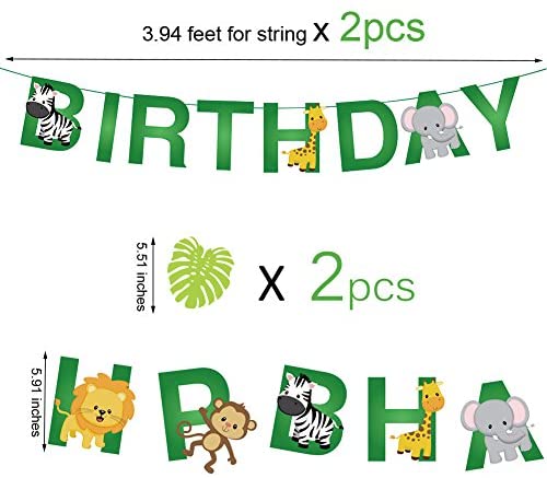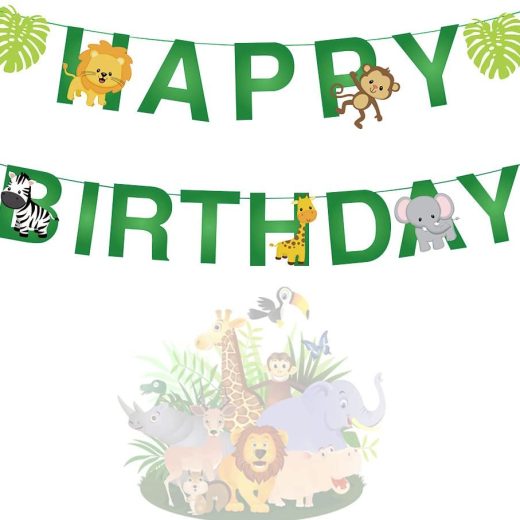15pcs Jungle Animals Leaves Happy Birthday Banner Decoration for Woodland Garland Forest Theme Birthday Festival Party