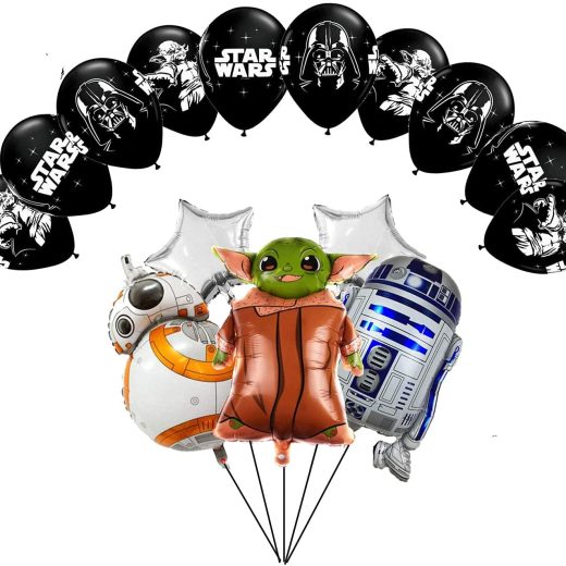 Package Includes: 3pcs Star war character balloons, 2pcs 18 inch star balloons, 10pcs 12 inch latex balloons. Material: Made of safe aluminum foil,…