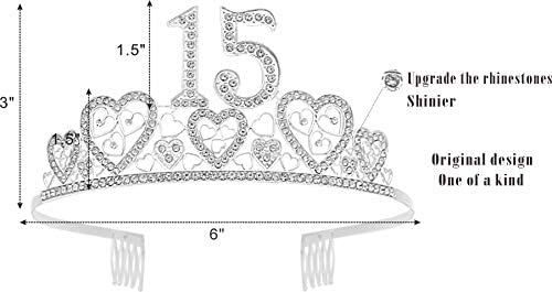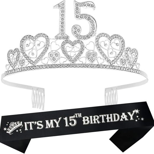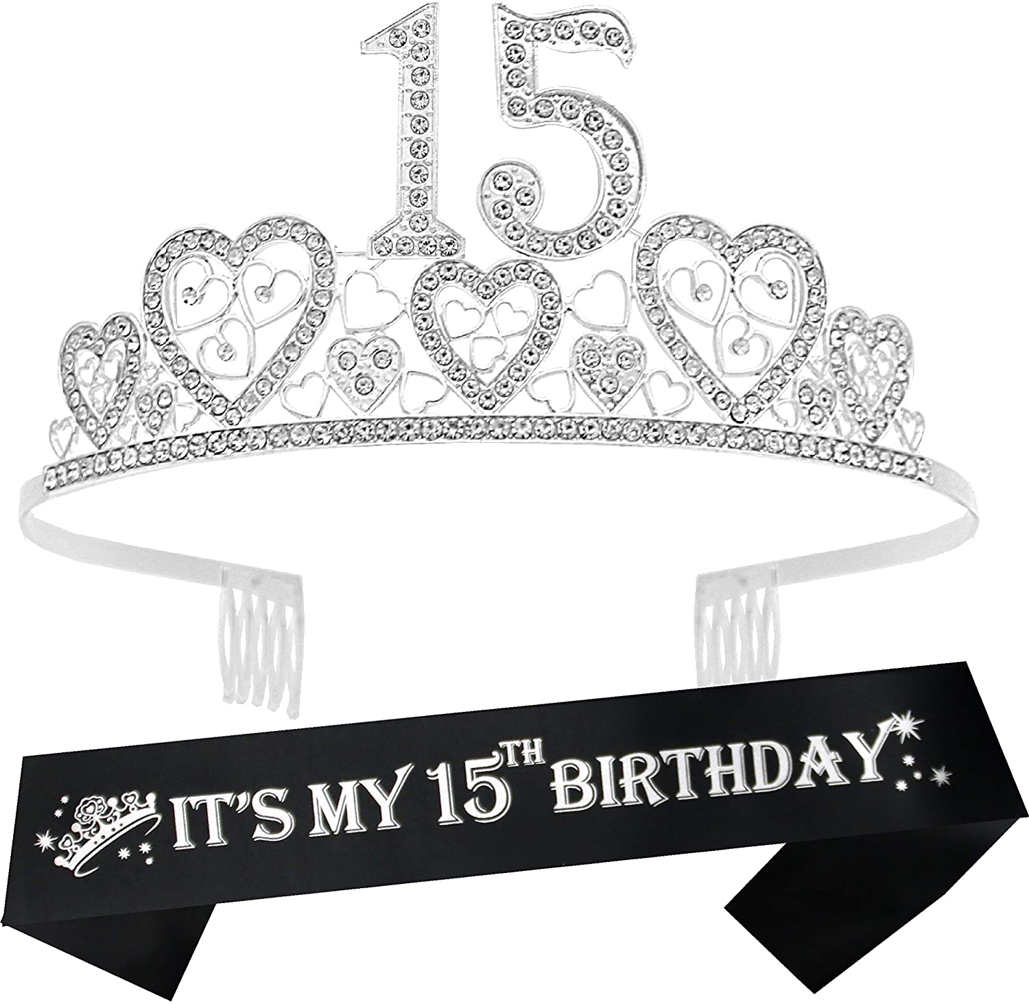 Beautiful 15th birthday gifts include: Silver 15th birthday crown with 15” and 15th birthday sash with Its My 15th Birthday, Suitable for Perfect f…