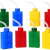 16 Brick Block Cups Color Building Brick Party Molded Cups Reusable Building Block Cups with Straw and Lid Cute Brick Block Cup for Children Birthday Party Supplies and Favors