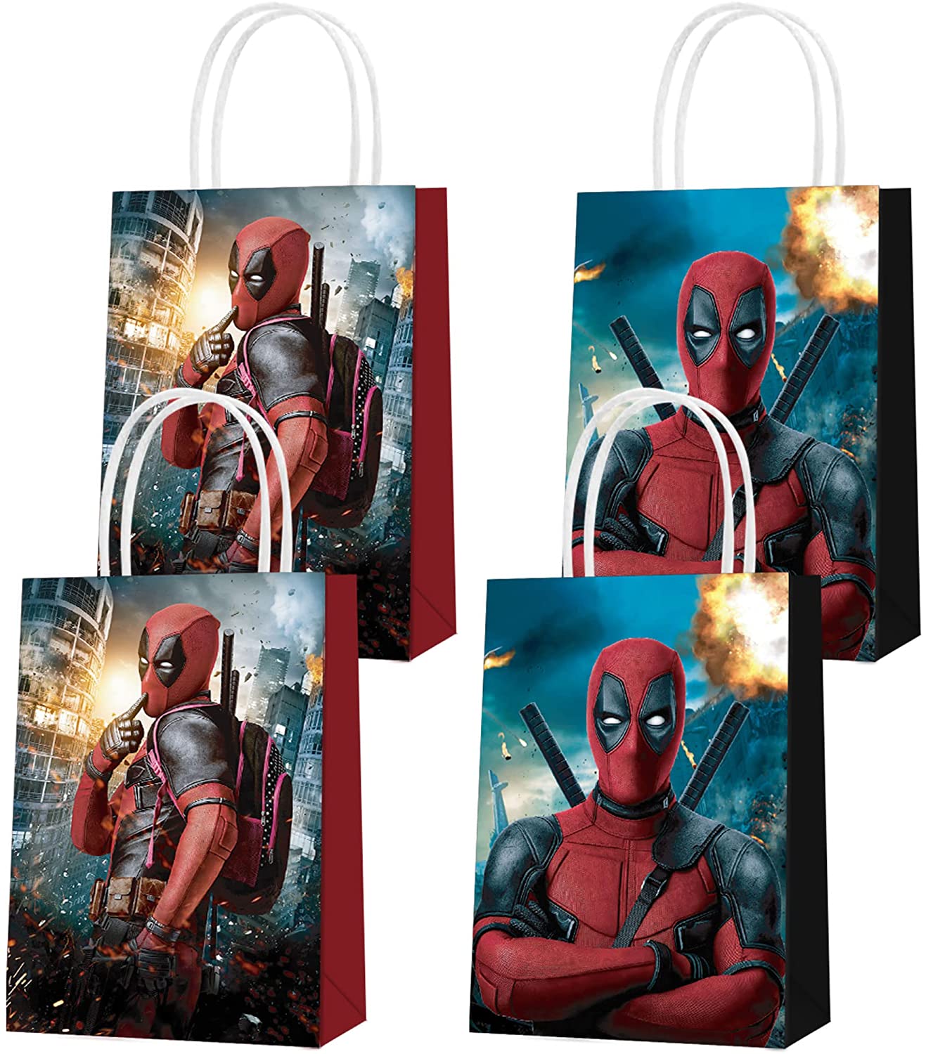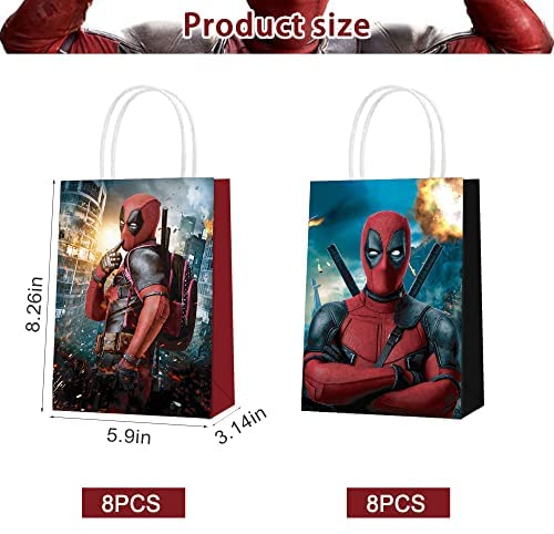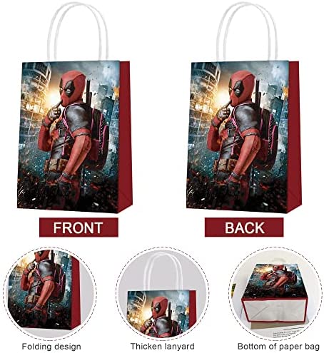 16 Pcs Deadpool Party Paper Gift Bags, 2 Styles Party Favor Bags with Handles for Deadpool 2 Party Decorations, Goody Bags Candy Gift Bags for Boys Girls Kids Birthday Party Supplies Favors