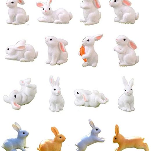 16 Pcs Fairy Garden Miniature Rabbit Figure Mini Bunny Figurines Miniature Animal Rabbit Figures, Rabbit Cake Topper, Rabbit Cake Decoration