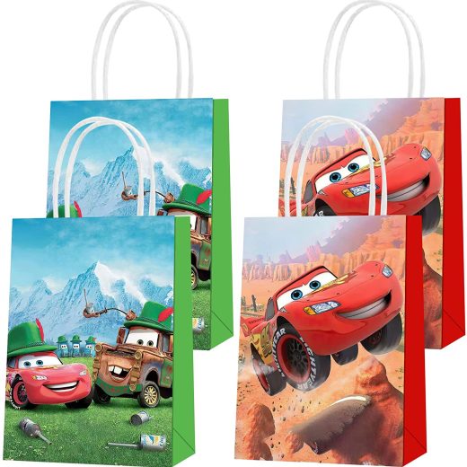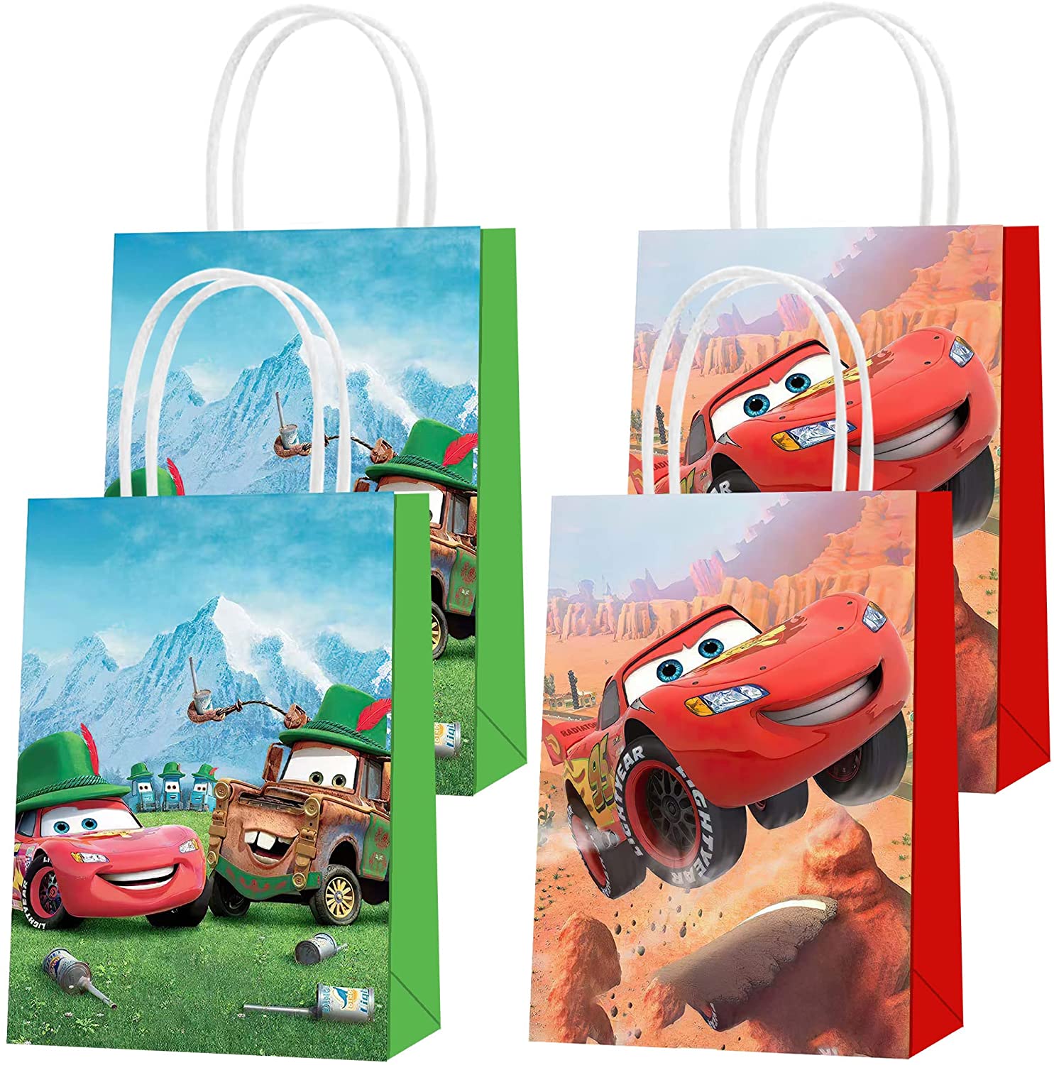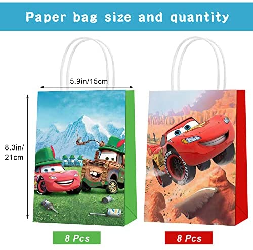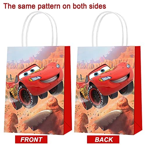 16 Pcs Lightning Car McQueen Party Paper Gift Bags, 2 Styles Party Favor Bags with Handles for Baby Boys Cartoon Fans Mc-Queen Birthday Party Decorations, Goody Bags Candy Gift Bags