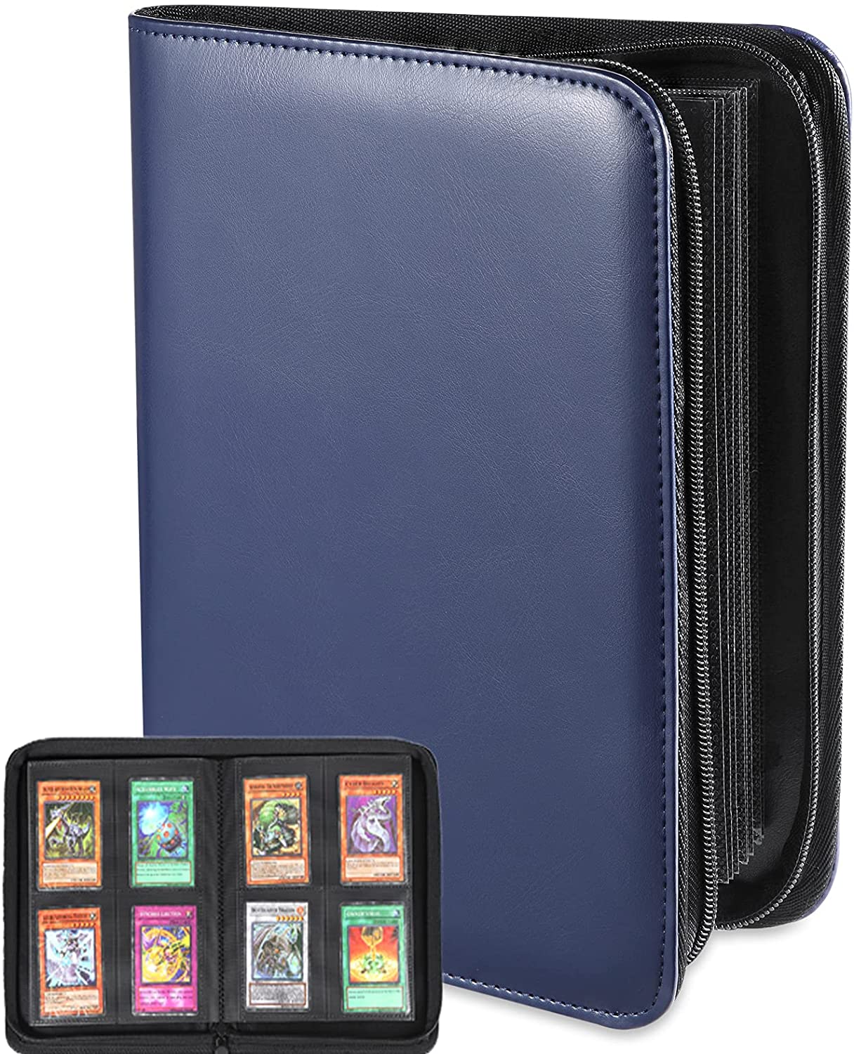 160 Pockets Trading Cards Binder Album, 4-Pocket Side Loading PP Card Sleeves, Zippered Yugioh Pokemon MTG Card Protection Book for Collector (Blue)