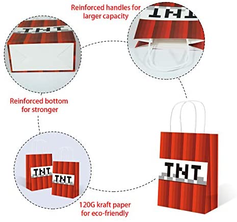 Pixel Game Party Favor Bags Specifications: – Color: Pixels Miner – Size: 7.87*5.91*3.15 inch (L x W x H) – Material: craft paper – Cute Pixels Miner printing pattern, suitable for baby shower, birthday, kids party, sports theme party. Package Included: 16 Pcs party gift bags with 4 pattern High Quality: These Pixel Miner goodie bags with handles are well made of high quality sturdy kraft paper with bottom sealed,durable and sturdy. Suitable Occasions: Perfect birthday decorations for game party gift bags to hold many gifts for kids who take party in your baby shower themed party, for pixels miner game themed party and so on.
