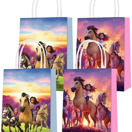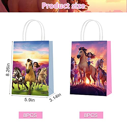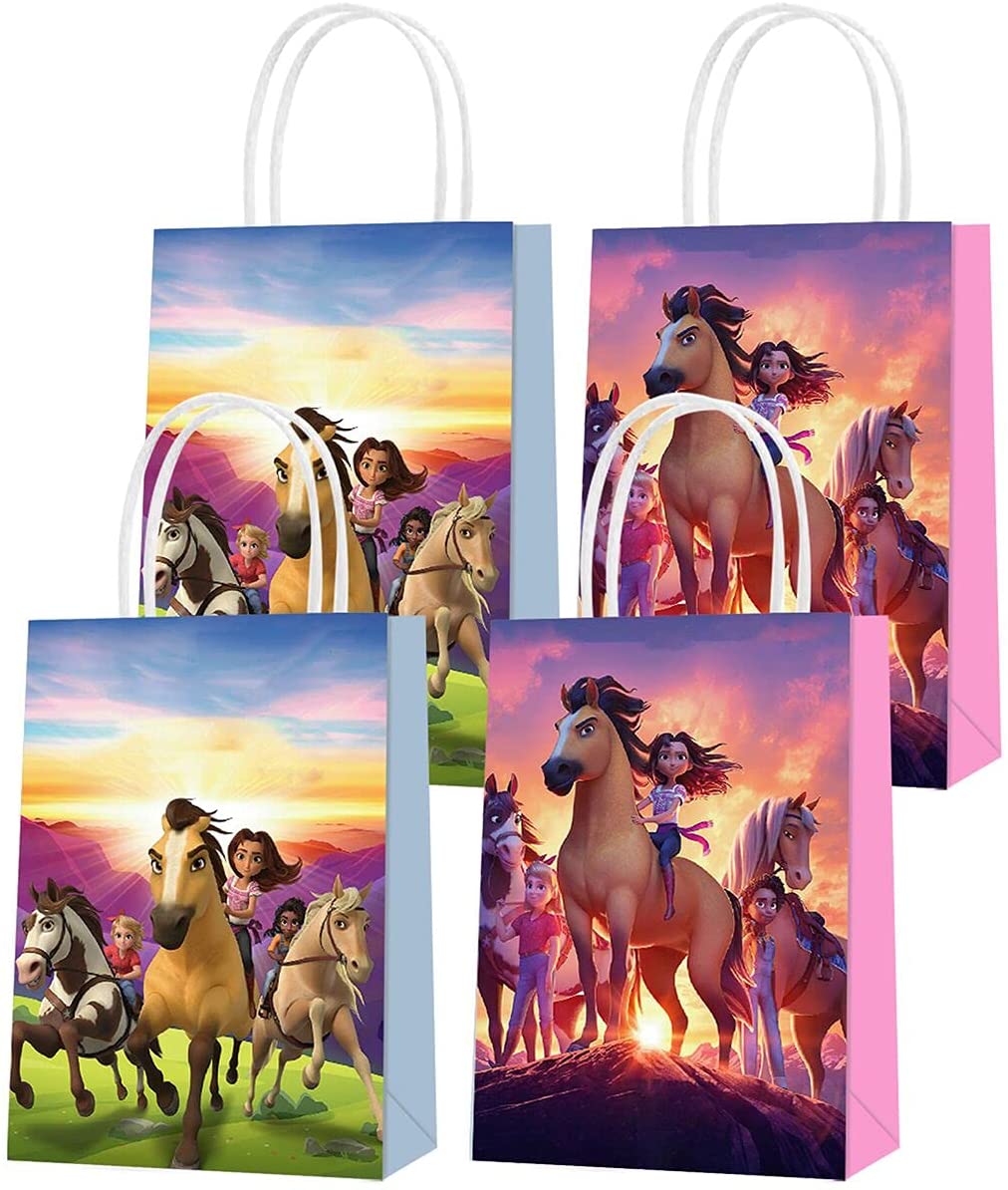 16Pcs Spirit Riding Free Horse Party Favor Bags, Movie Fans Birthday Paper Gift Bags with Handles for Spirit Riding Free Horse Themed Party Decorations Goody Treat Candy Bags