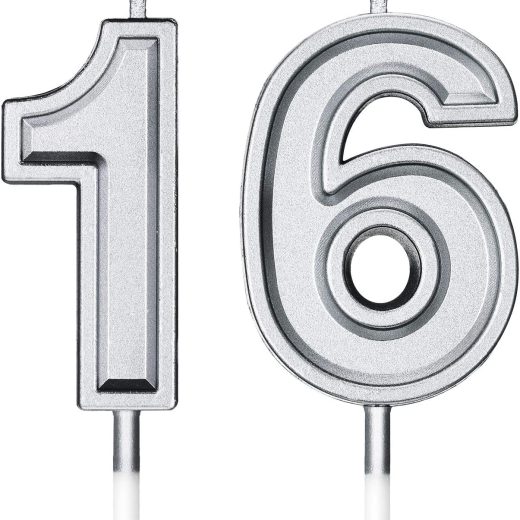 16th Birthday Candles Cake Numeral Candles Happy Birthday Cake Candles Topper Decoration for Birthday Wedding Anniversary Celebration Supplies (Silver)