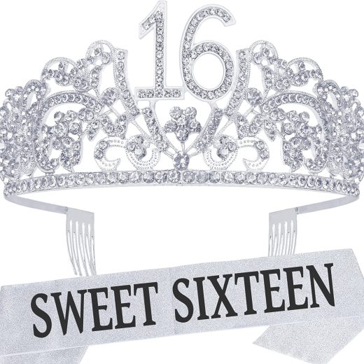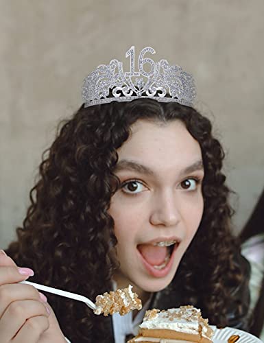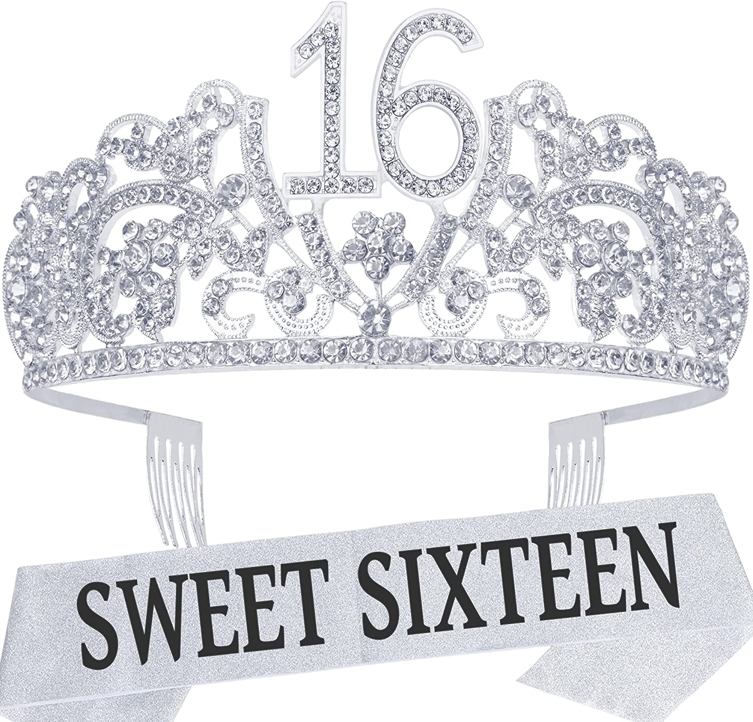 16th Birthday Gifts for Girls, 16th Birthday Tiara and Sash, 16th Birthday Decorations for Girl, 16th Birthday Crown and Sash for Girl, 16 Sash for Girl, sweet 16 party favors, u200b16 Tiaras and Crowns