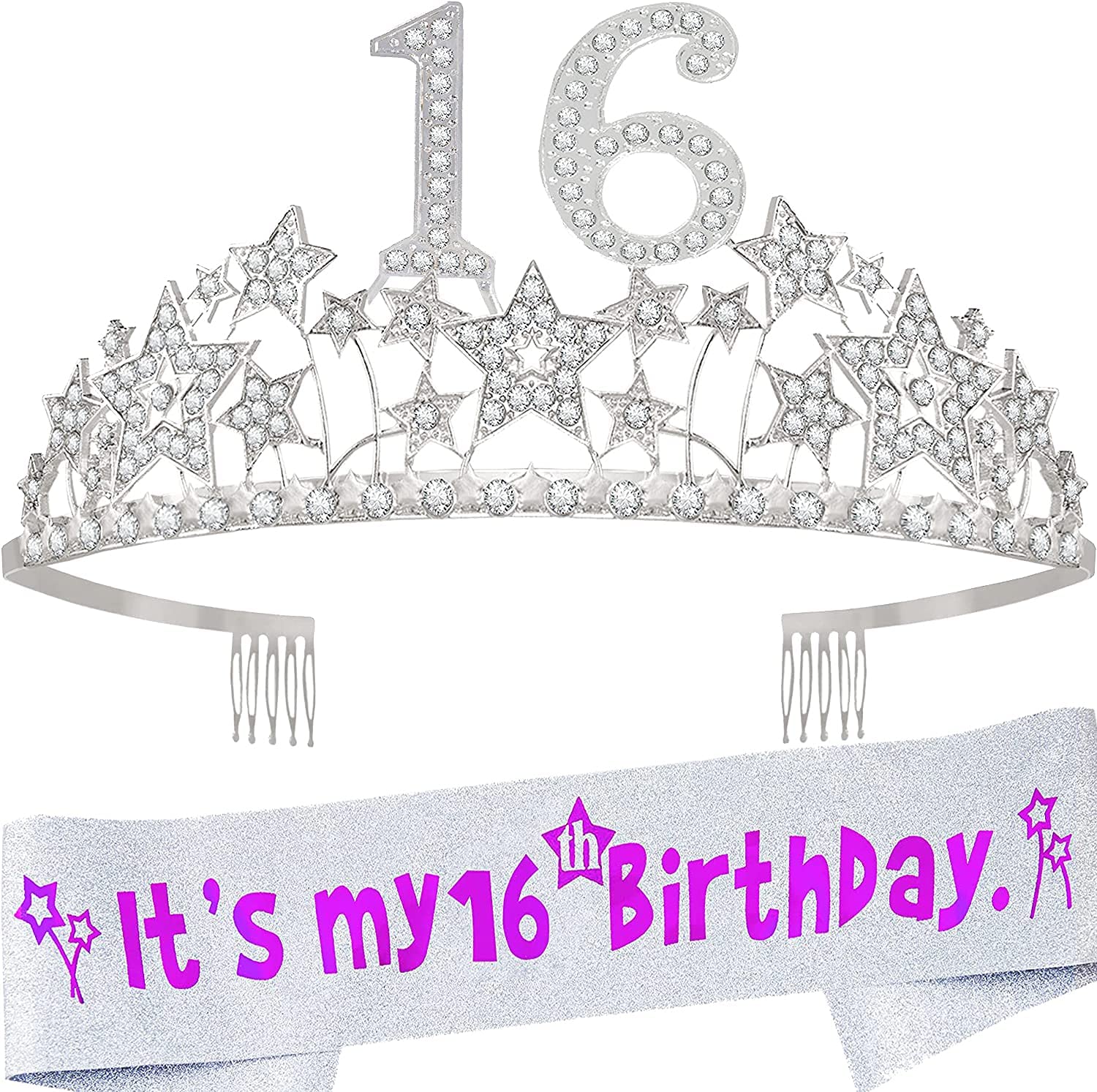 16th Birthday Gifts for Girls, 16th Birthday Tiara and Sash, 16th Birthday Decorations for Girl, 16th Birthday Crown and Sash for Girl, 16 Sash for Girl, u200b16 Tiaras and Crowns for Girls