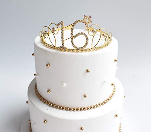 Super and cute happy birthday party supplies, favors, decorations for 16th Birthday. 16th Birthday is a special event. Birthday tiara and Sweet 16 black glitter satin sash. Best Gift Color: Black sash with gold font. Gold 16th birthday crown. Package: 1 x 16th tiara (Gold) 1 x Sweet 16 satin sash