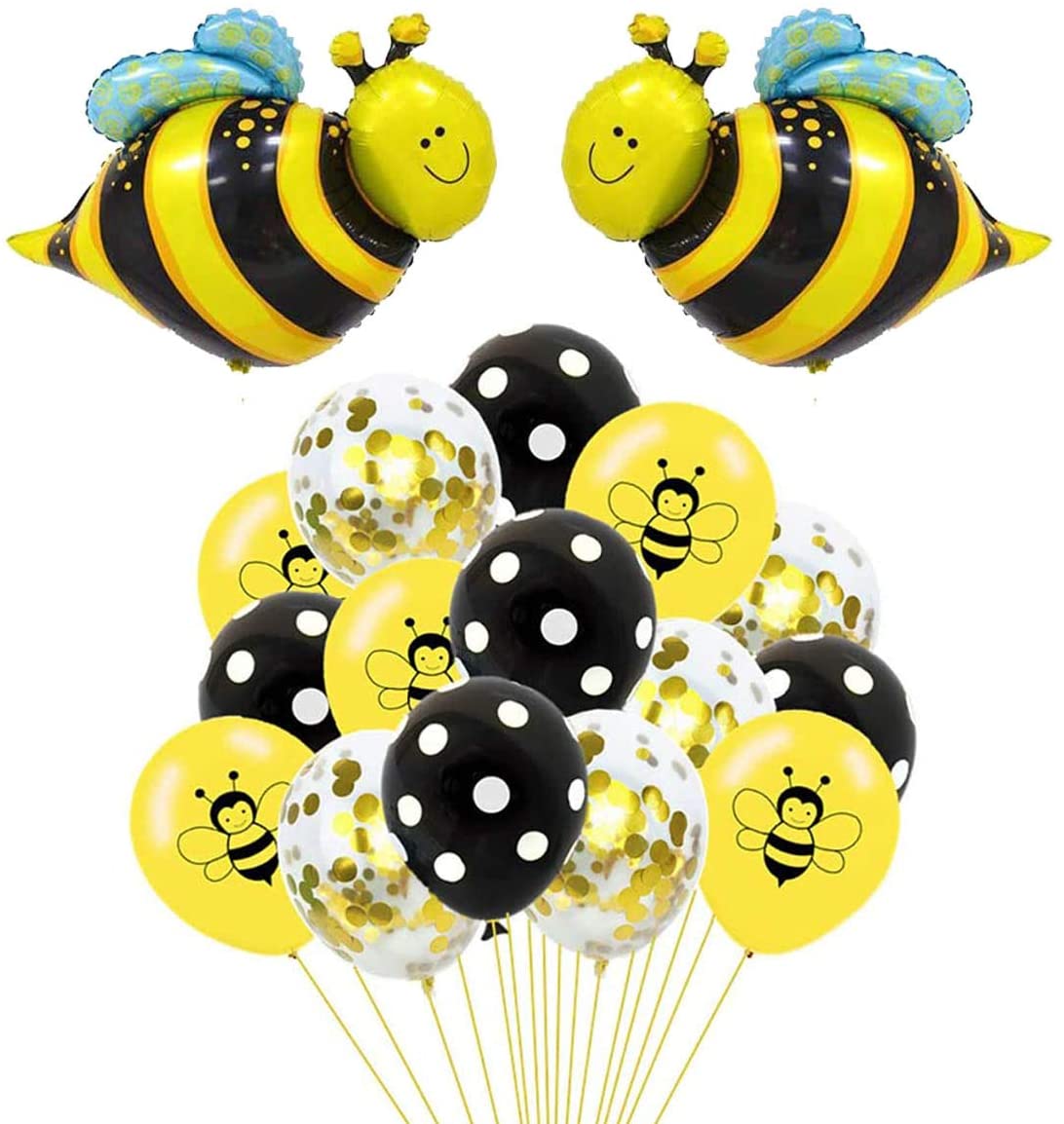 17 Pcs Bee Balloon Aluminum Foil Bee Balloon Spring Day Theme Party Wave Dot Latex Balloon Bee Shaped Foil Mylar Balloons for Wedding Birthday Baby Shower Party Decorations Supplies MYT-031502
