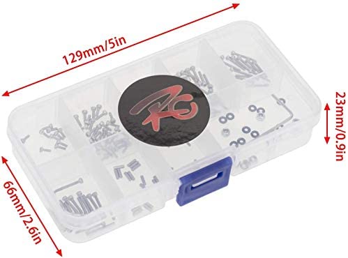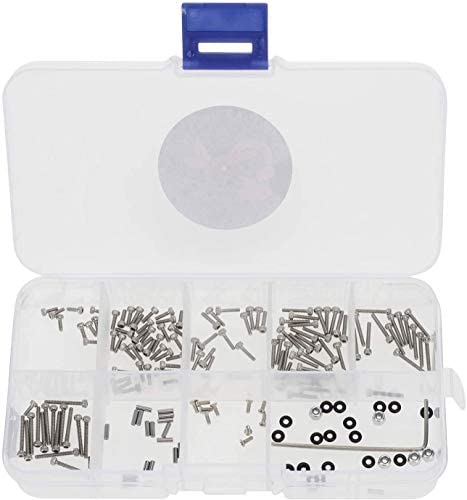 Description: – Stainless steel whole car screws 176PCS kit – These stainless screws have been well tested and are great quality – Suitable for Axial SCX24 AXI00002, SCX24 AXI00001, SCX24 AXI90081 – Package Contents: 176pcs in total, M1.4 Screws (cup head & flat head), O rings, Pins, Nuts and Hexagon Wrench Tool – This is an accessory product for Axial SCX24 RC car Specification: – Material: Stainless steel – Storage box size: 129x66x23mm/5×2.6×0.9inch Package Includes: 10 Pieces M1.4×4 Screws 35 Pieces M1.4×5 Screws 15 Pieces M1.4×6 Screws 30 Pieces M1.4×8 Screws 15 Pieces M1.4×10 Screws 15 Pieces M1.4×12 Screws 10 Pieces M1.4×4 Screws(flat head) 20 Pieces O Rings 20 Pieces M1.5×5 Pins 5 Pieces M2 Nuts 1 Piece Wrench