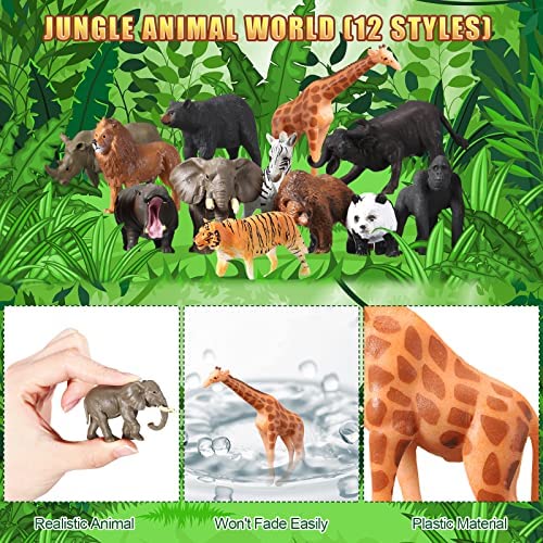 Jungle theme party supplies: the package contains 12 pieces of plastic animal figurines, including lion, tiger, panda, hippo, giraffe, elephant, or…