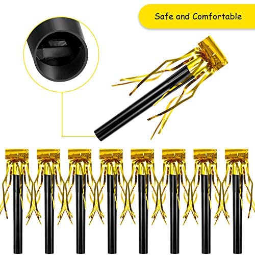 18 Pieces Party Squawkers Party Blower Noisemakers Blowouts Whistles Fringed Noise Maker Gold Musical Blowouts for New Year Party Birthday Party Supplies